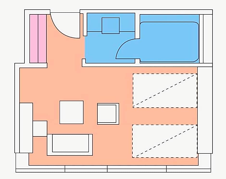 Air-conditioned room with a tatami (woven-straw) floor and traditional futon bedding. It’s furnished with an LCD TV, a fridge and an electric kettle. Yukata robes are provided and the attached bathroom comes with toiletries and a hairdryer. Free Wi-Fi and wired internet are available.